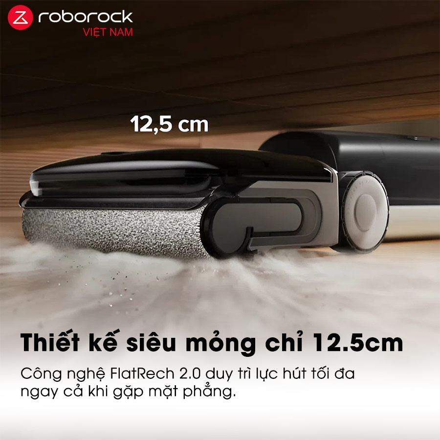 Với công nghệ FlatReach 2.0, Roborock F25 RT Gen 2 có thể ngả phẳng hoàn toàn, dễ dàng tiếp cận khu vực gầm thấp như giường, tủ hay sofa. Dù ở trạng thái này, máy vẫn duy trì lực hút ổn định, đảm bảo hiệu quả làm sạch không bị suy giảm.